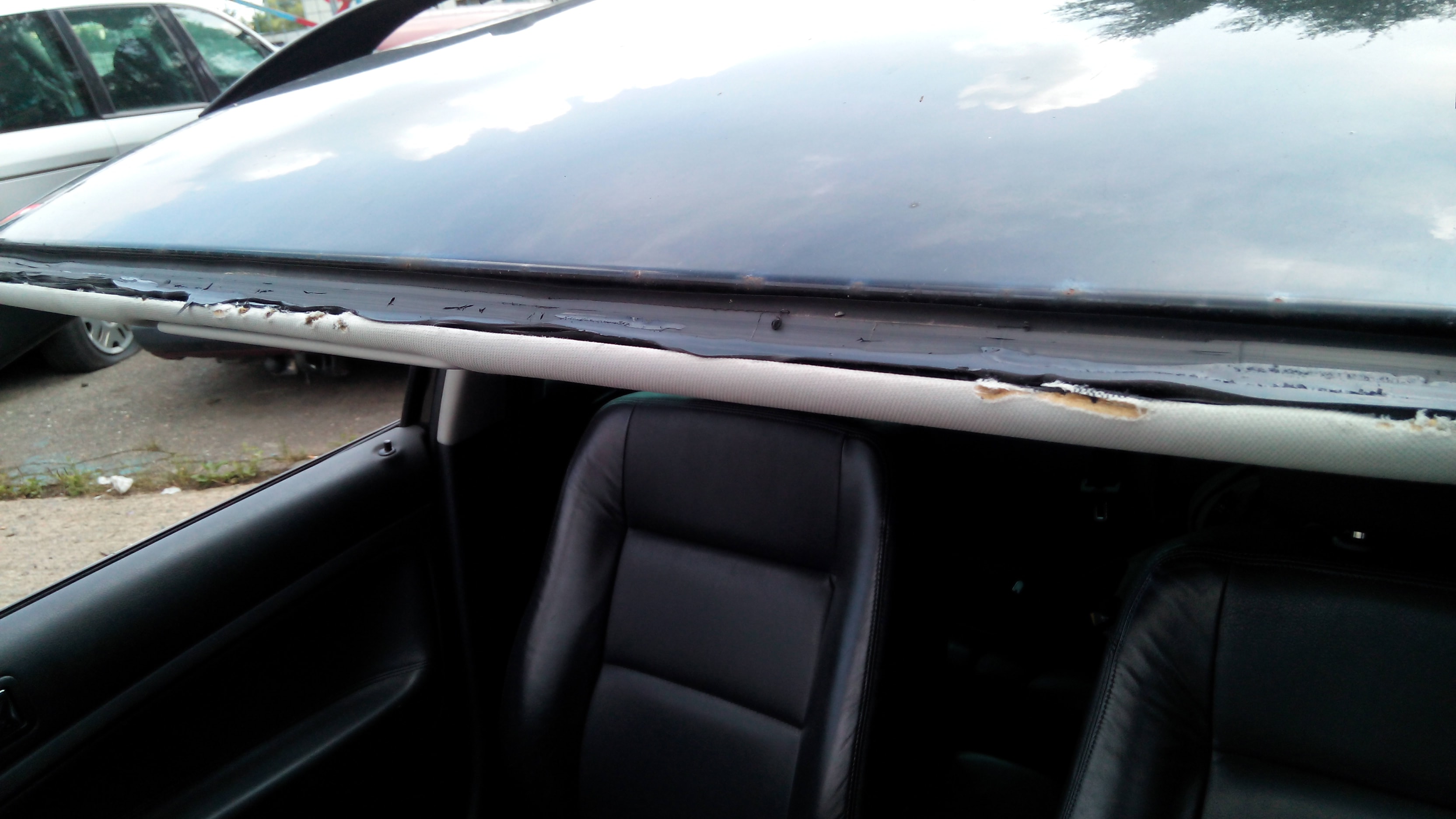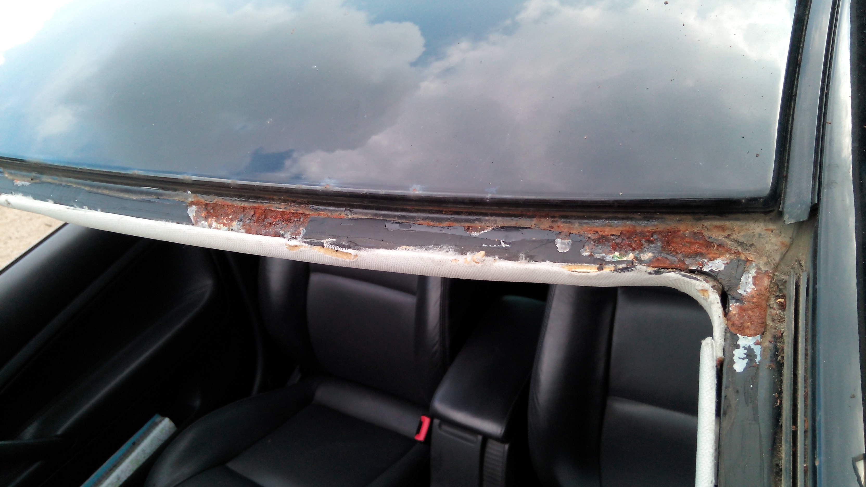 Na následujících fotografiích můžete vidět například následky, pokud mechanik měnící sklo neděla práci opatrně. Naprosto zničený střešní panel a rez, která se zvětšuje, není rozhodně to co, by mělo po servisu zůstat.